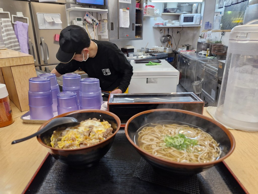 And, back in my nondescript and thoroughly un-touristy corner of Osaka, I found a delightful “mom-and-pop” udon restaurant on a street corner and paid $9.50 for a huge bowl of beef-and-egg on rice with udon soup on the side, cooked in front of me by the elderly owner, who then casually slurped down his own dinner over the same stove. And I felt better.