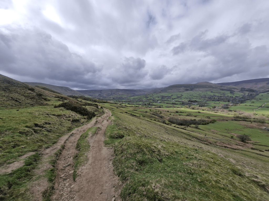 The weather in Castleton wasn’t looking flash that morning. A bit of sun then a bit of rain, then clouds, then sun again. Runners at the start line were in singlets and tiny shorts or full thermals and jackets. I was freezing so I set off in my jacket, and I also knew post-Wales that the summits can be a total blizzard.