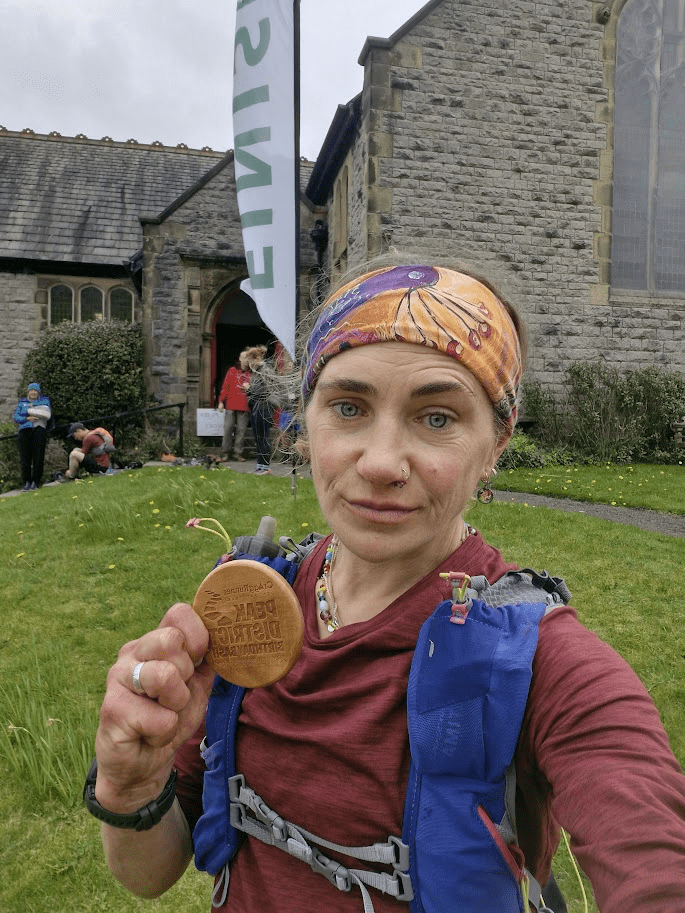 I very nearly set off up another ridge when a guy wearing the same race bib came jogging up. With a much better watch and a much better sense of direction. Only 2k to go, painful as they were, we sailed down through those hills back into Castleton, where it turned out the finish line really did exist, and they gave me my finisher’s coaster and my legs completely gave way beneath me.